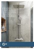 Modell Bestell-Nr. DUSCHSYSTEM MIT A6985AA CERATHERM 100 • CERATHERM 100 Brausethermostat mit verdeckten Überwurfmuttern, eckigen Wandrosetten und Rück- flussverhinderer • EVO Diamond Handbrause mit NAVIGO-Umschaltung und 3 Strahl- arten: - Sanfter Regen - Regen - Massage • Metall-Kopfbrause, quadratisch, mit Kugelgelenk, 200 x 200 mm • Wasserführende Brausestange mit schwenkbarem Druckknopfschieber • Idealflex Brauseschlauch 1750 mm • 5 Jahre Garantie